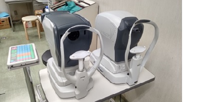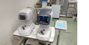 (写真の右側)近視・遠視・乱視といった屈折異常をコンピュータで自動的に計測する装置です。